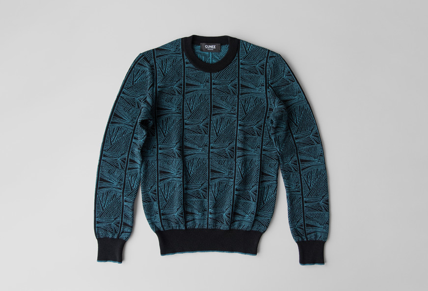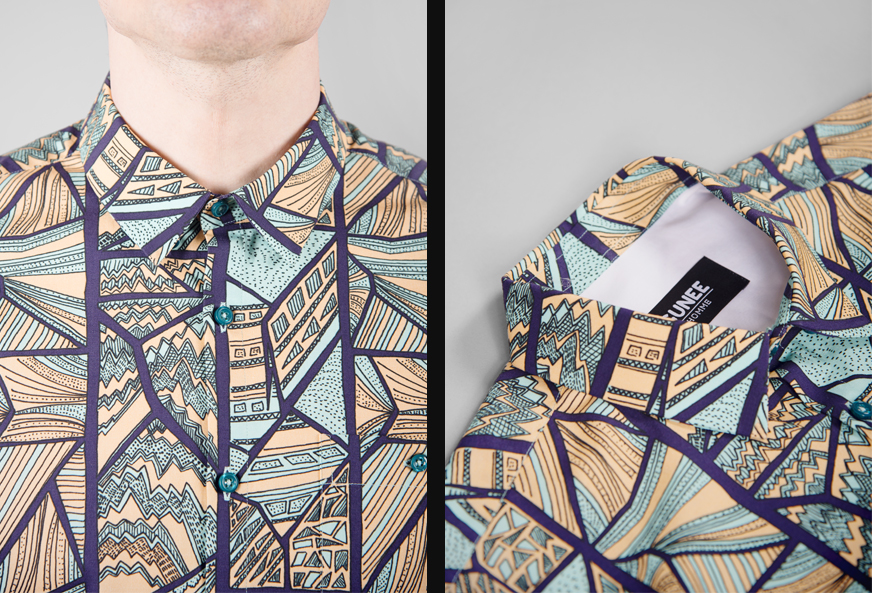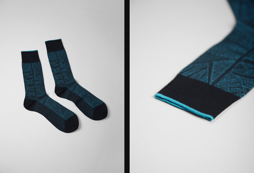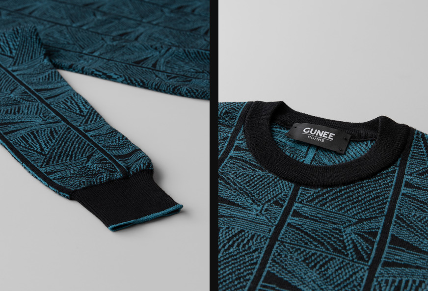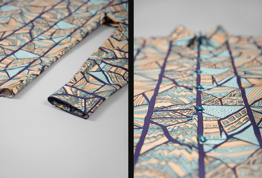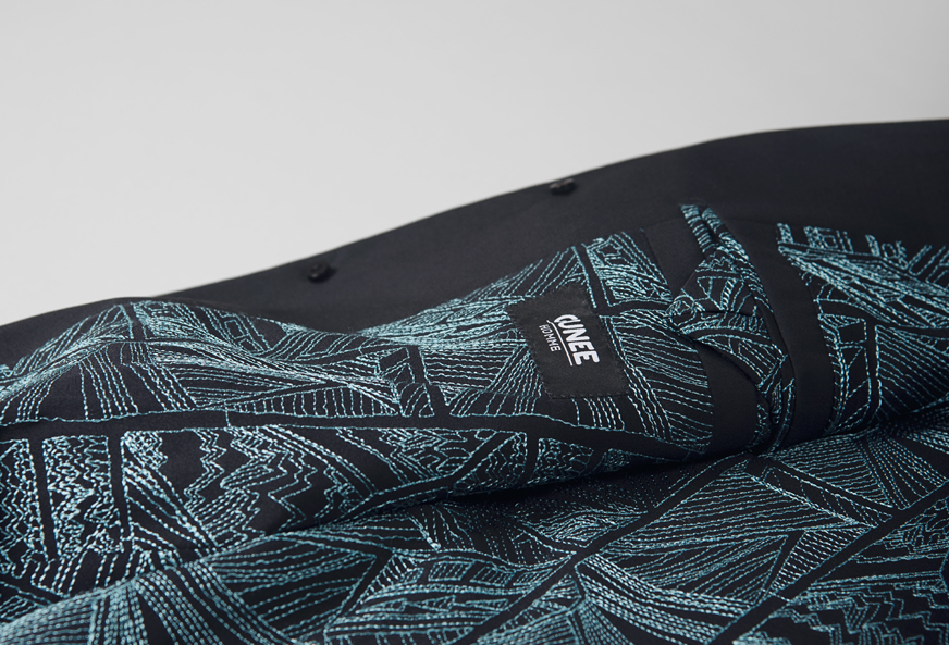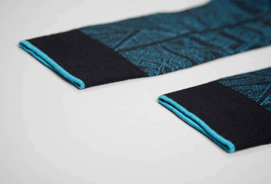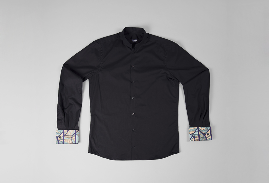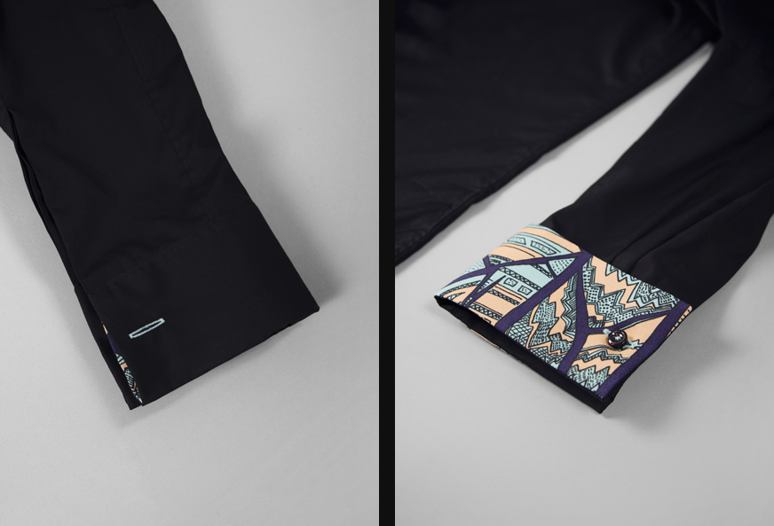 · Combi cuffs: Changeable between printed stripes and black with contrasting coloured buttonholes in petrol